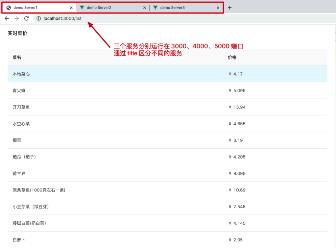 从上图可以看出,我们启动了三个同样的 Demo 服务,使用网站的 title 来进行区分。