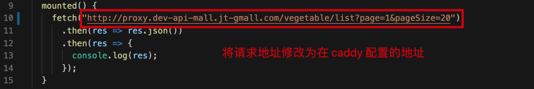 在配置好 Caddyfile 后,我们将我们请求的地址修改为 ,代码实现如下: