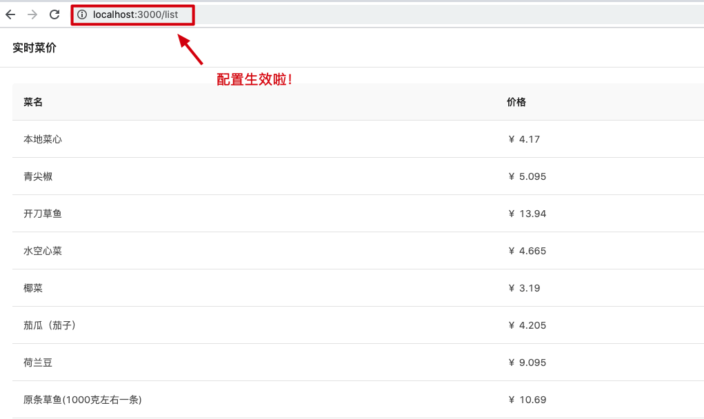 :3000 { file_server root * ./dist try_files {path} /index.html}配置完成后,我们打开浏览器,输入 :3000/list,会发现我们的页面成功渲染啦(见下图)!