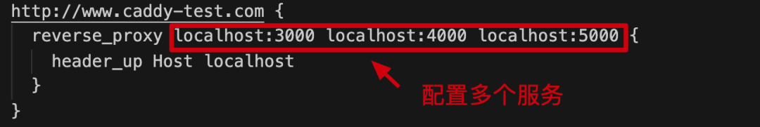 使用 Caddy 做负载均衡,只需要将多个服务挂在同一个 reverse_proxy 属性下即可(见下图)
