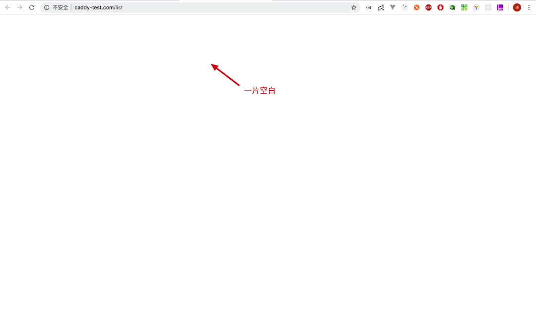 从上图可以看出,我们此时的页面是一片空白。这是因为在解析了域名和端口后,浏览器最终访问到了 127.0.0.1:80 上的 Caddy 服务(我们在第一节的时候运行了 Caddy),而 Caddy 服务对这条域名的访问并没有做配置,无法做出正确响应。接下来,我们将会进行 Caddyfile 的配置。